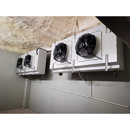 利用壓縮機排氣的高溫制冷劑來化霜,環保節能; 自動熱氟融霜,除霜速度快、效果好、能耗小; 自動熱氟融霜是靠電腦自動化控制的,當冷庫內需要融霜時